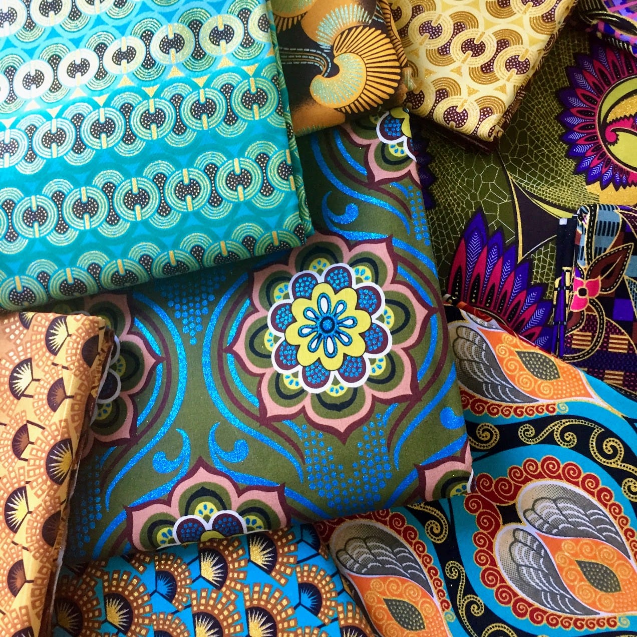 Tissu Wax pailleté bleu turquoise imprimé Demi-lunes, vente au coupon, pour vos créations de vêtements, sacs et accessoires, décoration intérieure…