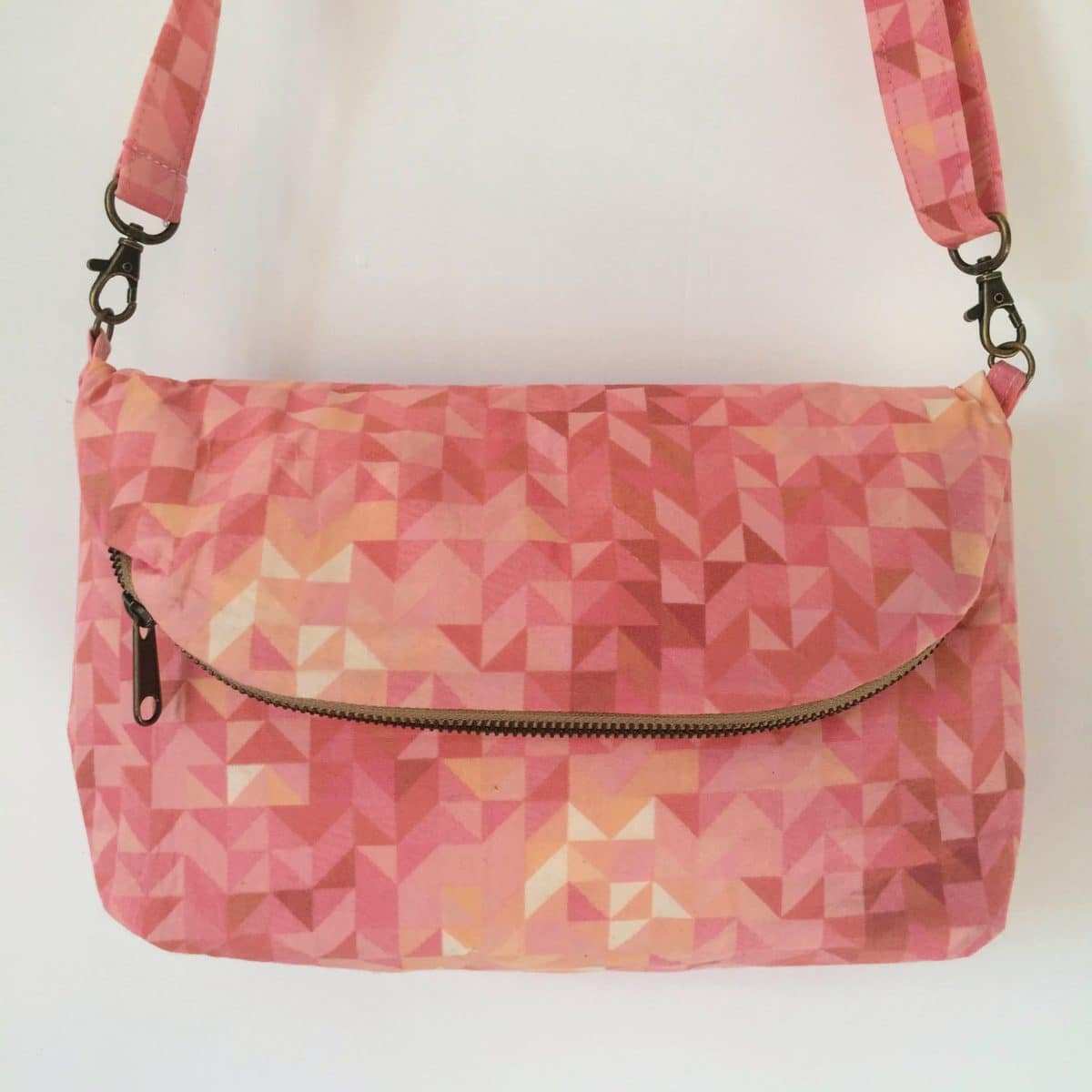 Sac besace en coton imprimé Rose Pixelisée.