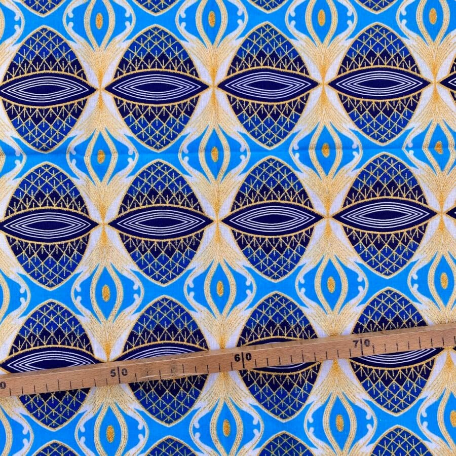 N’hésitez plus et craquez pour ce Tissu Wax pailleté bleu beige imprimé Oeuf!