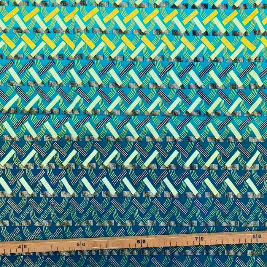 Encore un bel imprimé en vente au coupon, pour vos créations de vêtements, sacs et accessoires, décoration intérieure… Un Tissu Wax pailleté bleu canard qui vous inspirera autant que moi je l’espère!