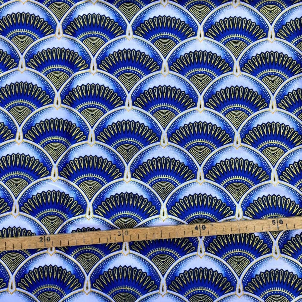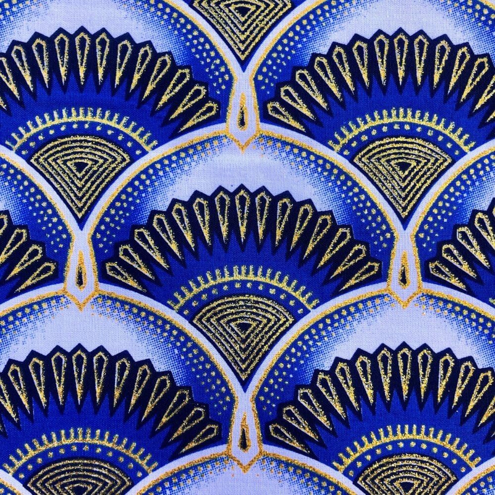 N’hésitez plus et craquez pour ce Tissu Wax pailleté bleu imprimé Art Déco mini!