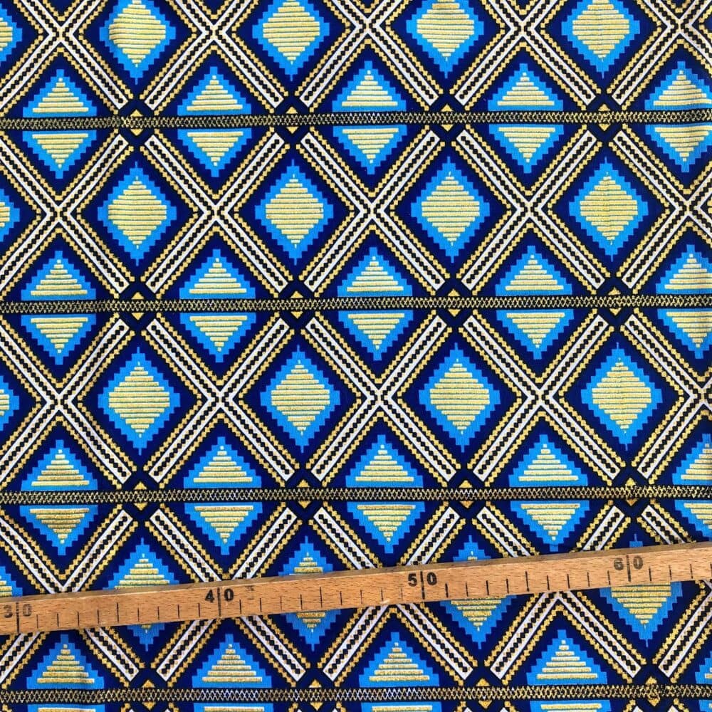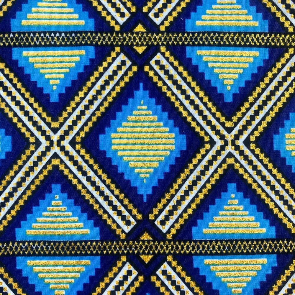 N’hésitez plus et craquez pour ce Tissu Wax pailleté bleu imprimé Grille!