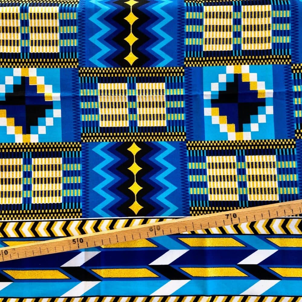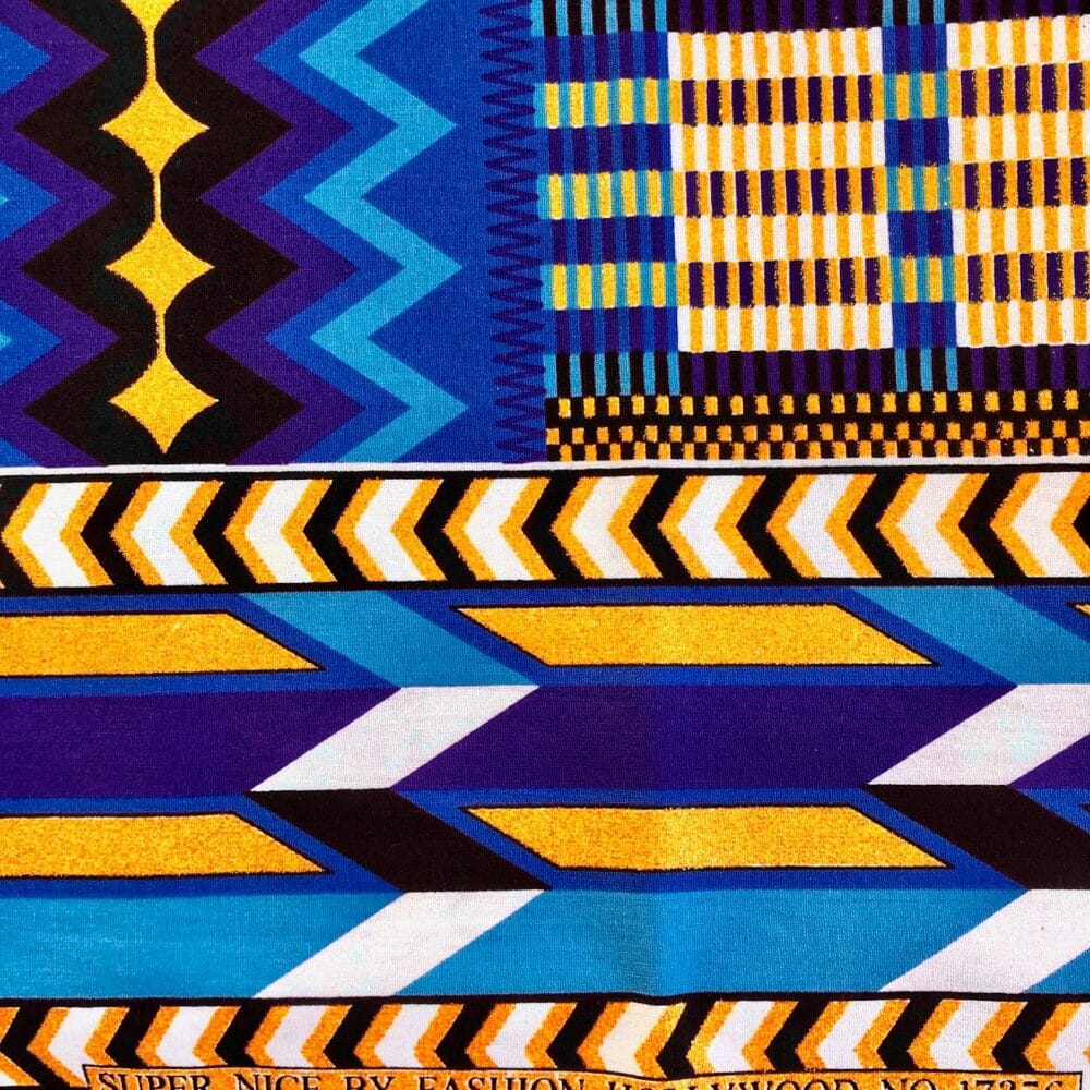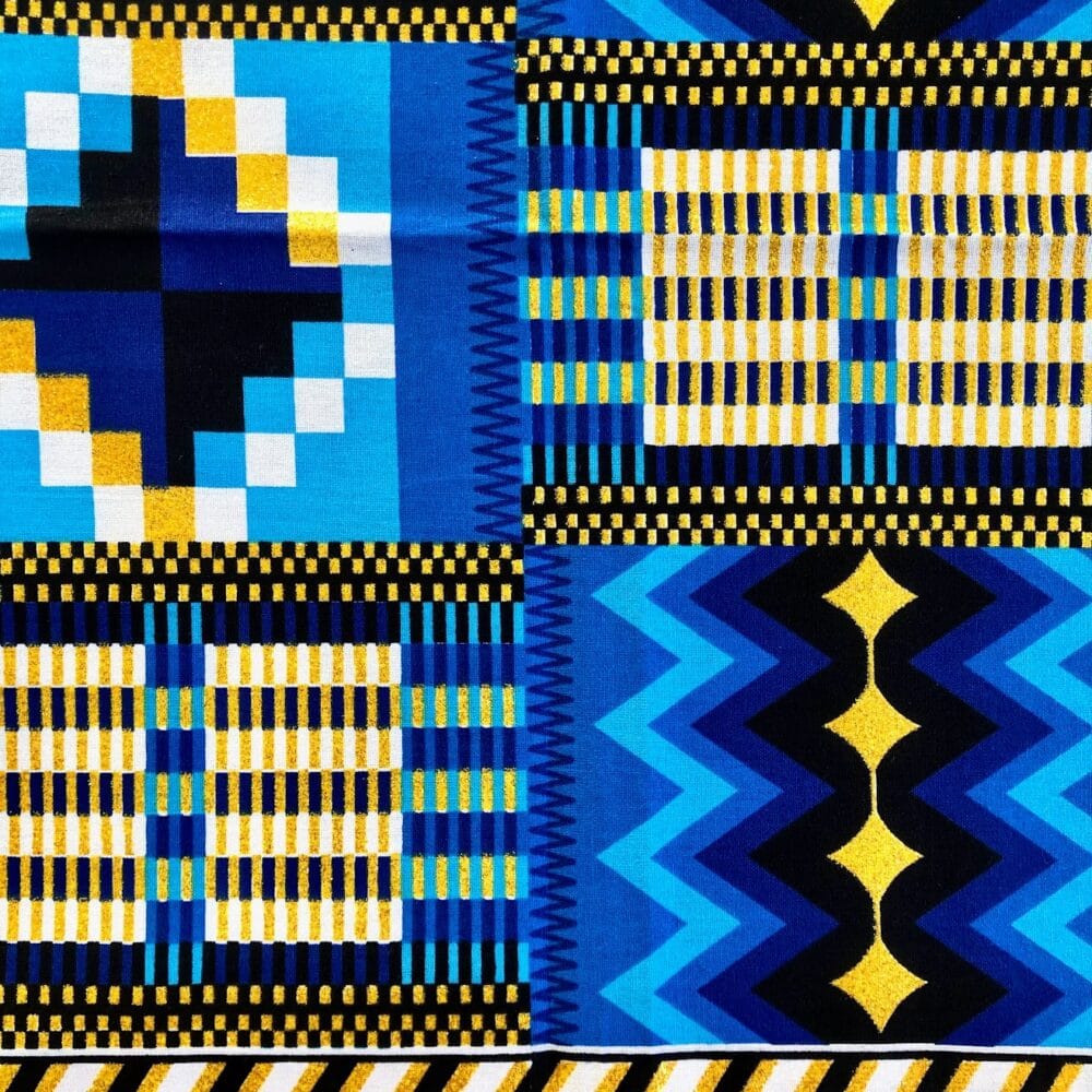 Encore un bel imprimé en vente au coupon, pour vos créations de vêtements, sacs et accessoires, décoration intérieure… Un Tissu Wax pailleté bleu qui vous inspirera autant que moi je l’espère!