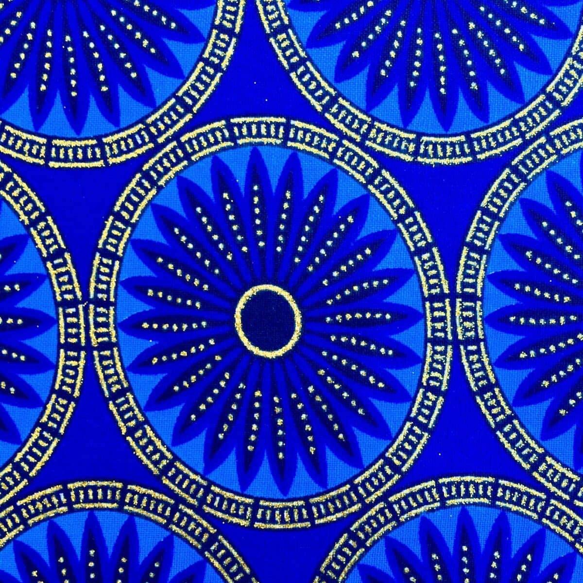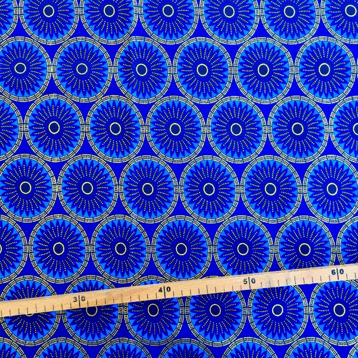 N’hésitez plus et craquez pour ce Tissu Wax pailleté bleu imprimé Rosaces!