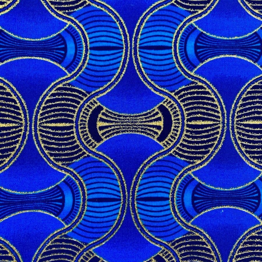 Encore un bel imprimé en vente au coupon, pour vos créations de vêtements, sacs et accessoires, décoration intérieure… Un Tissu Wax pailleté bleu qui vous inspirera autant que moi je l’espère!