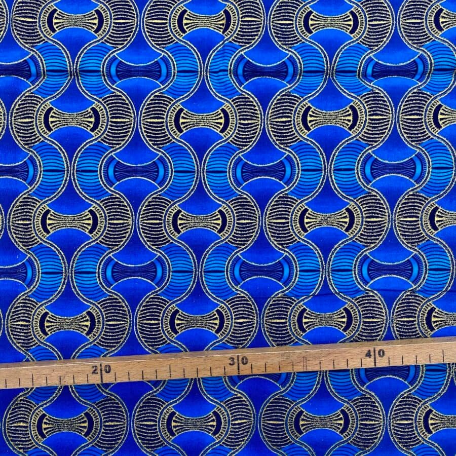 N’hésitez plus et craquez pour ce Tissu Wax pailleté bleu imprimé Tambour!
