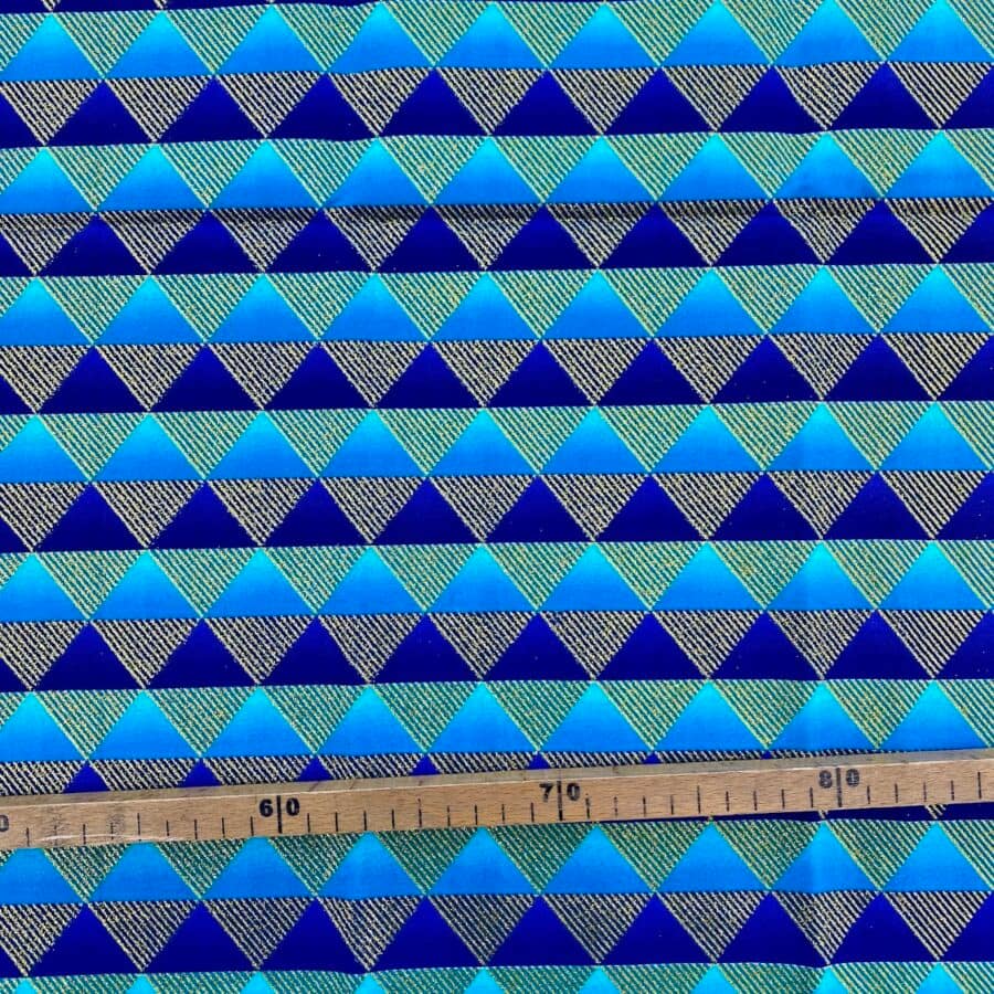 N’hésitez plus et craquez pour ce Tissu Wax pailleté bleu turquoise imprimé Triangles!
