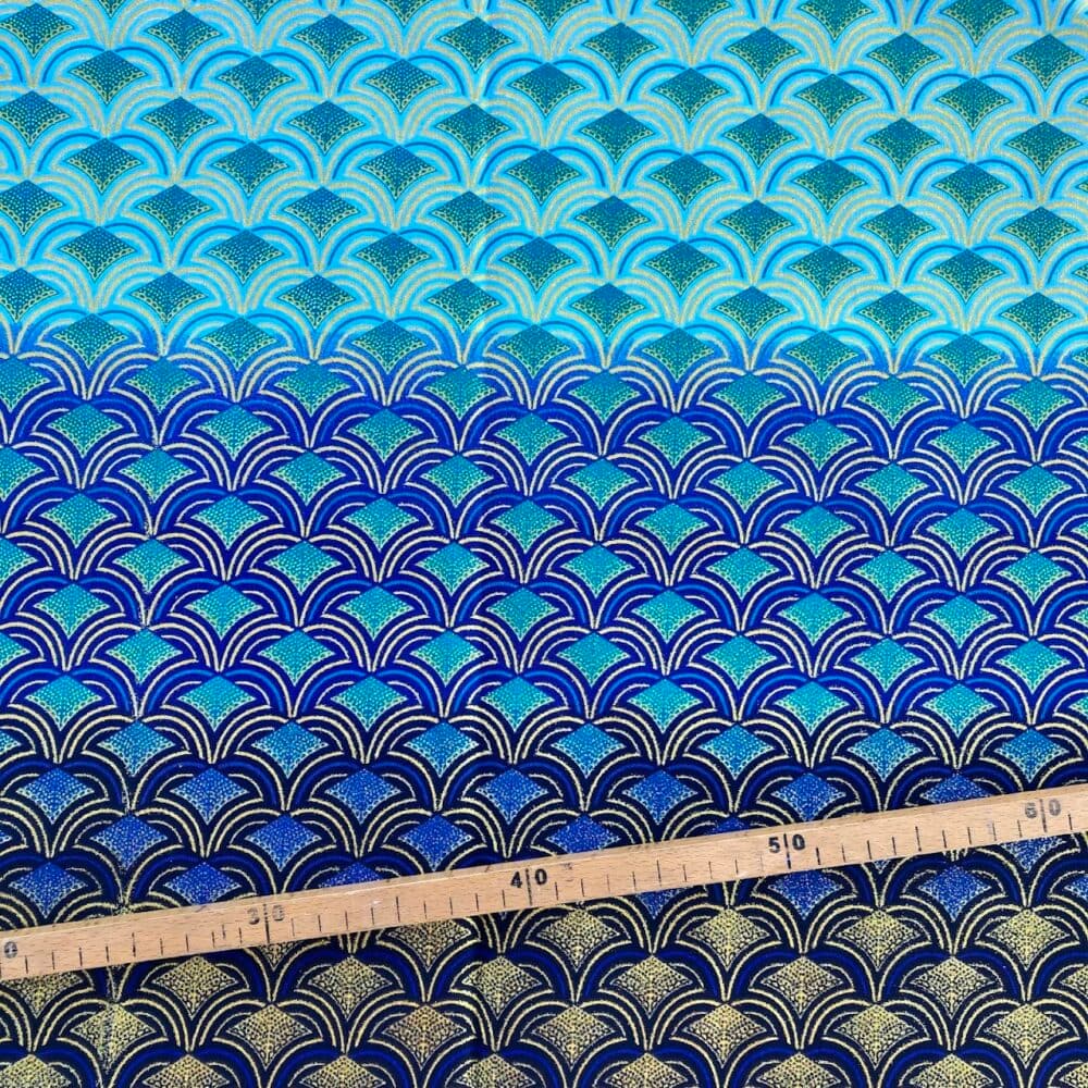 Tissu Wax pailleté dégradé bleu imprimé Ecailles