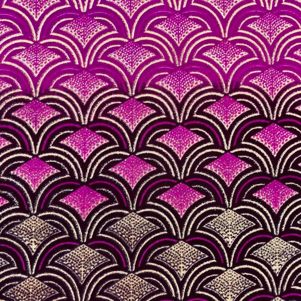 Encore un bel imprimé en vente au coupon, pour vos créations de vêtements, sacs et accessoires, décoration intérieure… Un Tissu Wax pailleté dégradé rose qui vous inspirera autant que moi je l’espère!