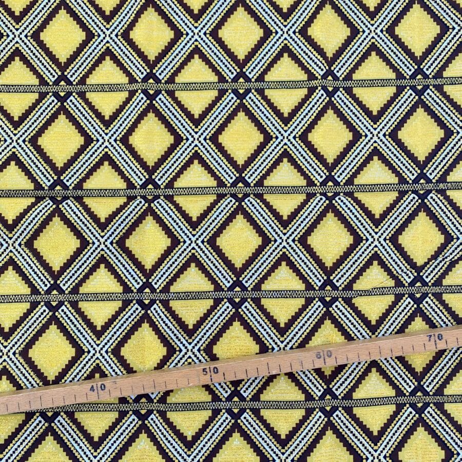 Partager la publication "Tissu Wax pailleté kaki imprimé Grille"