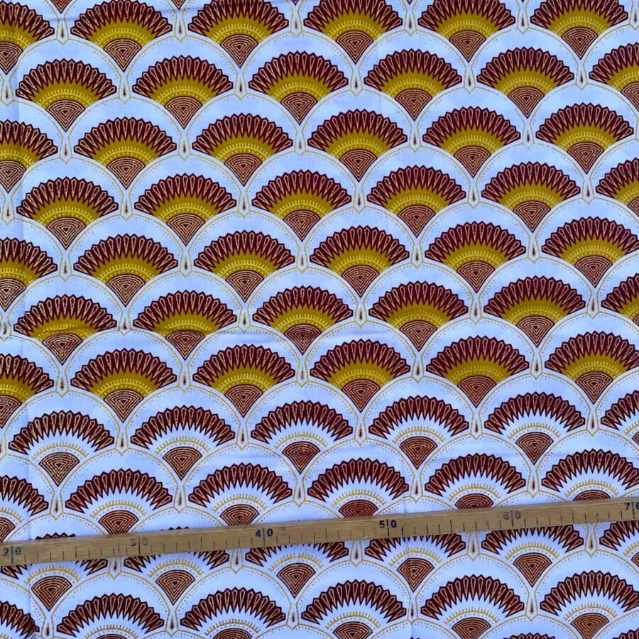 N’hésitez plus et craquez pour ce Tissu Wax pailleté marron imprimé Art Deco mini!