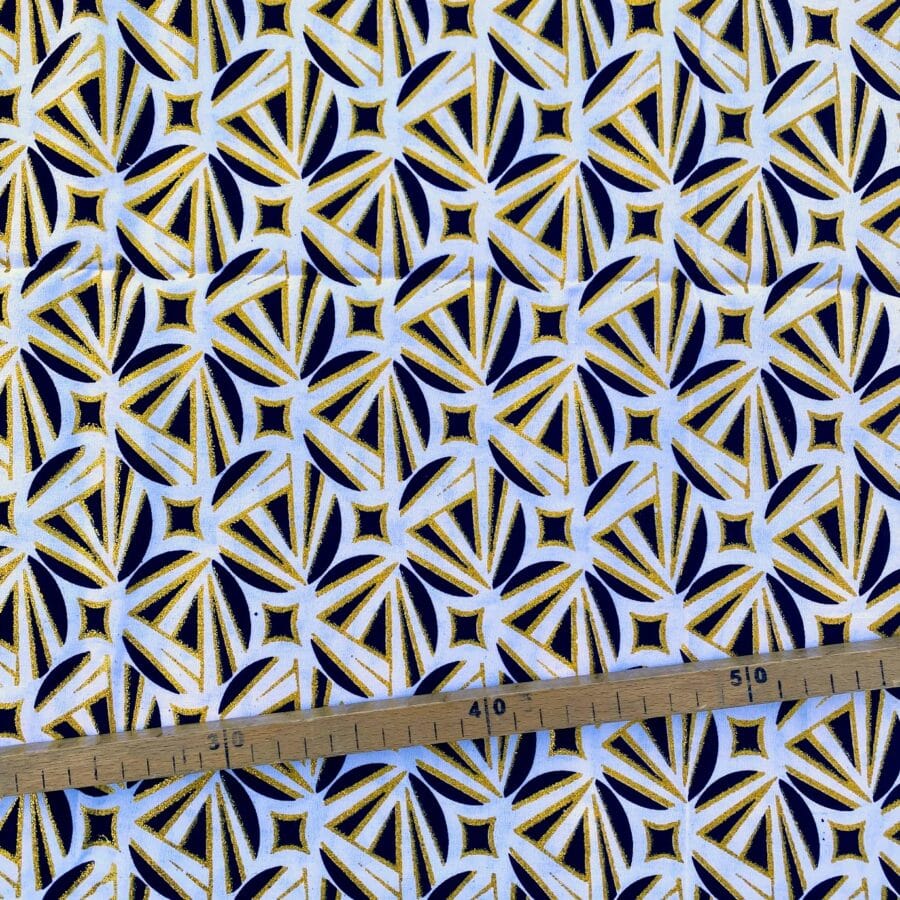 Encore un bel imprimé en vente au coupon, pour vos créations de vêtements, sacs et accessoires, décoration intérieure… Un Tissu Wax pailleté noir et blanc qui vous inspirera autant que moi je l’espère!