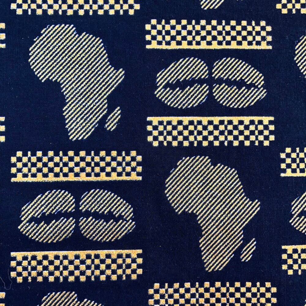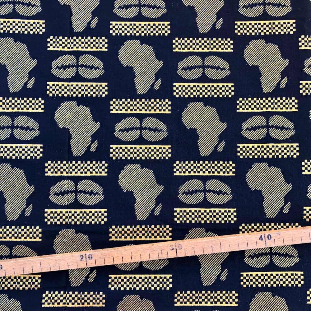 Tissu Wax pailleté noir imprimé Africa