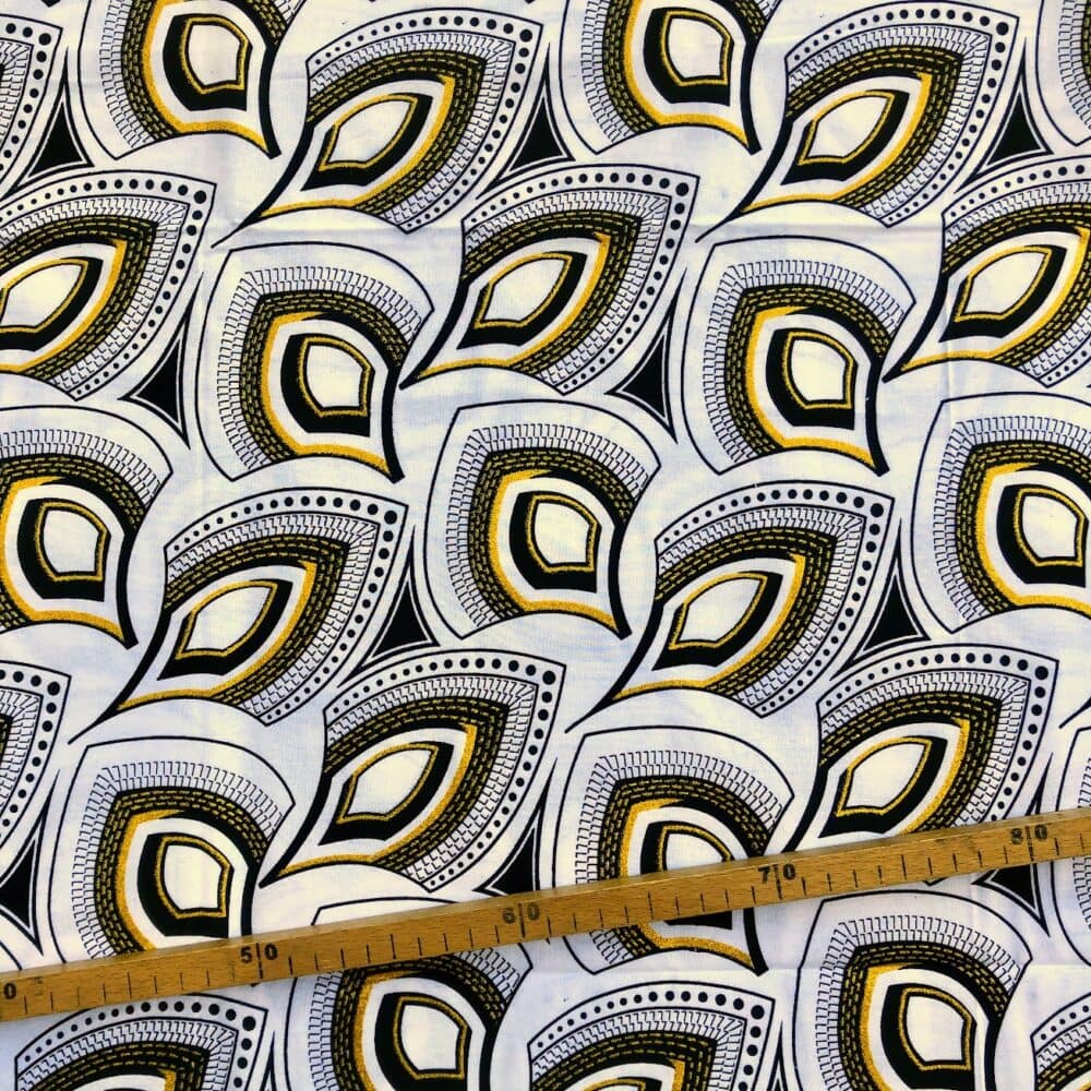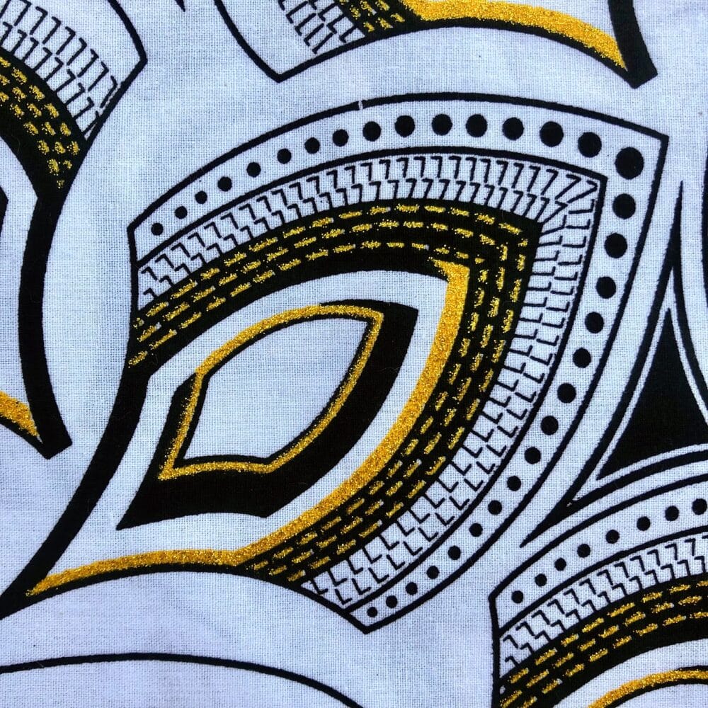 Encore un bel imprimé en vente au coupon, pour vos créations de vêtements, sacs et accessoires, décoration intérieure… Un Tissu Wax pailleté noir qui vous inspirera autant que moi je l’espère!