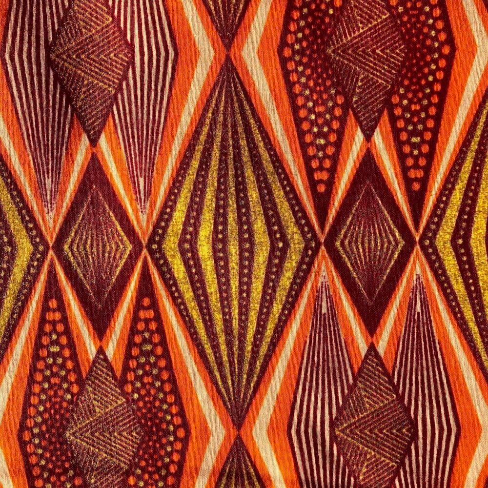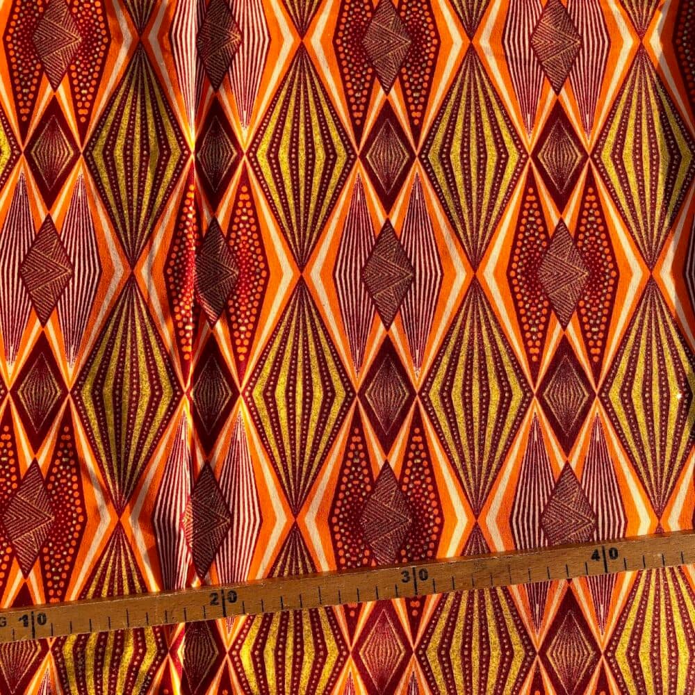 N’hésitez plus et craquez pour ce Tissu Wax pailleté orange imprimé Losanges!
