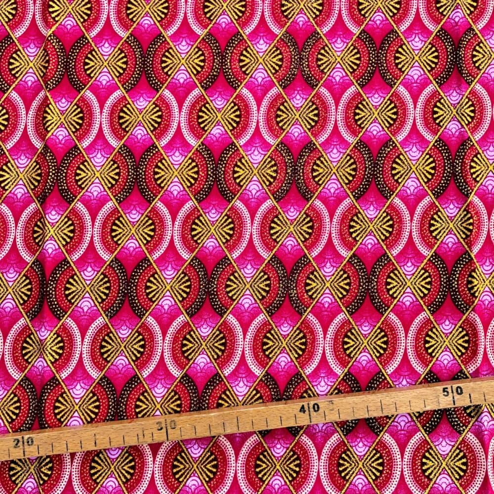 N’hésitez plus et craquez pour ce Tissu Wax pailleté rose imprimé Demi-lunes!