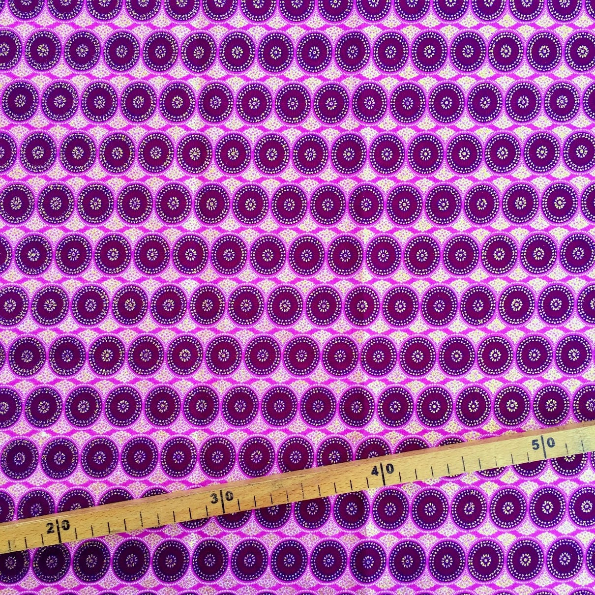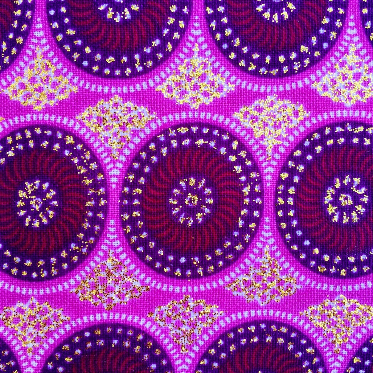 Tissu Wax pailleté rose imprimé Mini cercles