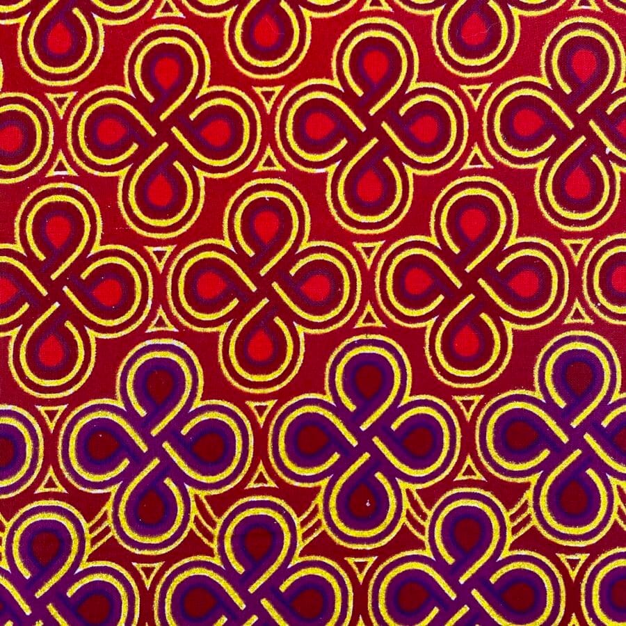 Encore un bel imprimé en vente au coupon, pour vos créations de vêtements, sacs et accessoires, décoration intérieure… Un Tissu Wax pailleté rouge qui vous inspirera autant que moi je l’espère!