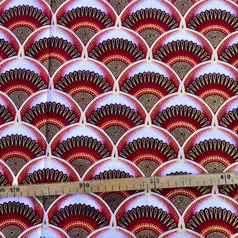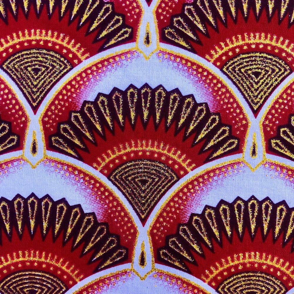 Tissu Wax pailleté rouge imprimé Art Déco mini