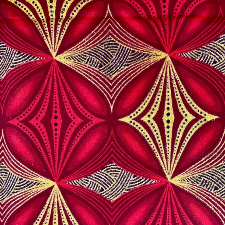Encore un bel imprimé en vente au coupon, pour vos créations de vêtements, sacs et accessoires, décoration intérieure… Un Tissu Wax pailleté rouge qui vous inspirera autant que moi je l’espère!