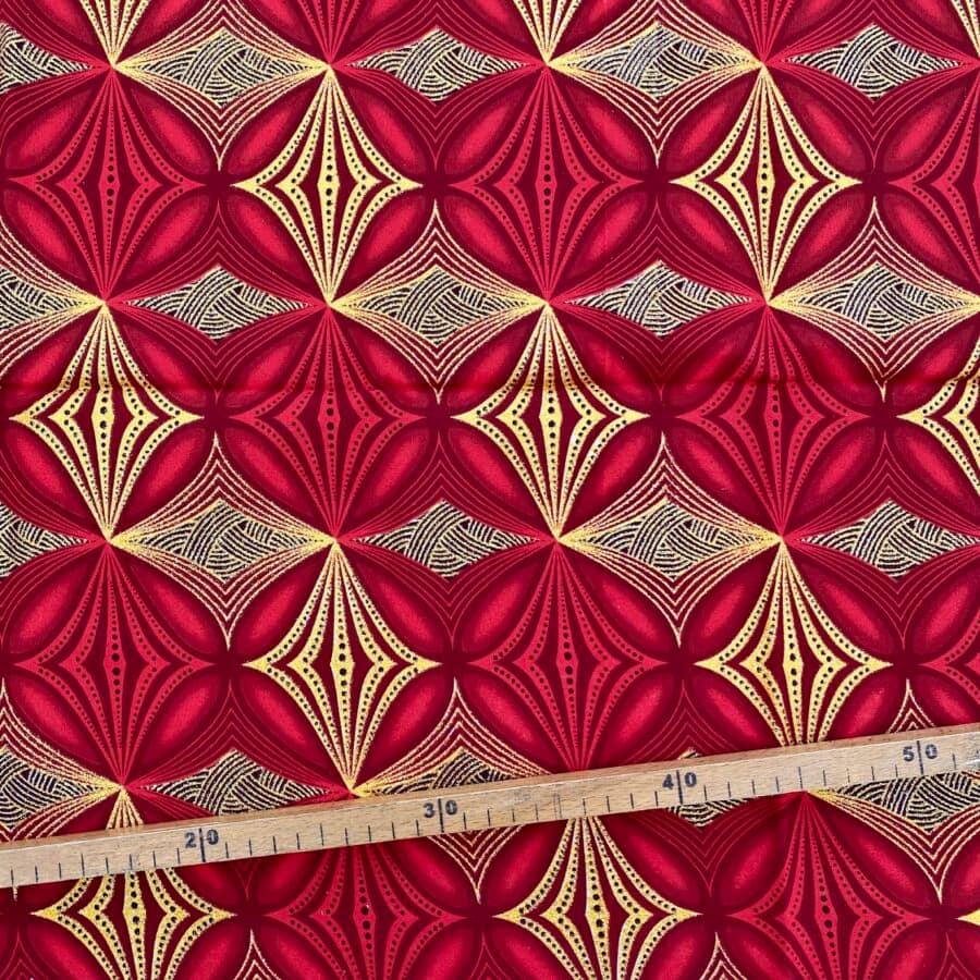 Tissu Wax pailleté rouge imprimé Circulaire