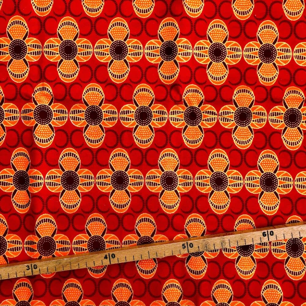 Partager la publication "Tissu Wax pailleté rouge orange imprimé Fleurs"