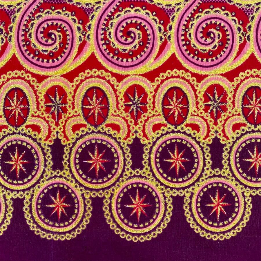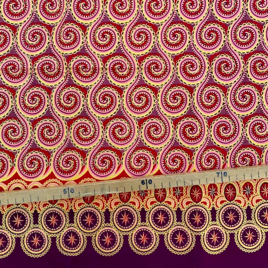 Encore un bel imprimé en vente au coupon, pour vos créations de vêtements, sacs et accessoires, décoration intérieure… Un Tissu Wax pailleté rouge rose qui vous inspirera autant que moi je l’espère!