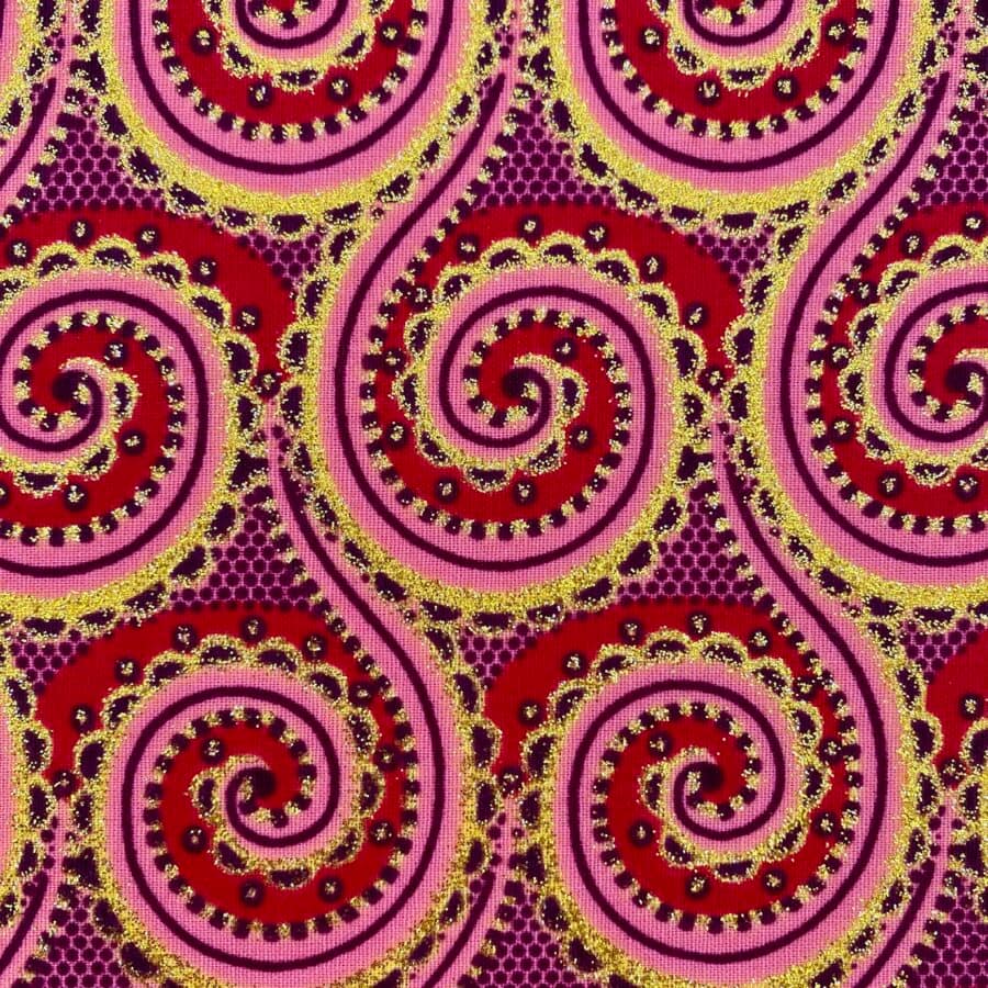 N’hésitez plus et craquez pour ce Tissu Wax pailleté rouge rose imprimé Serpentin!