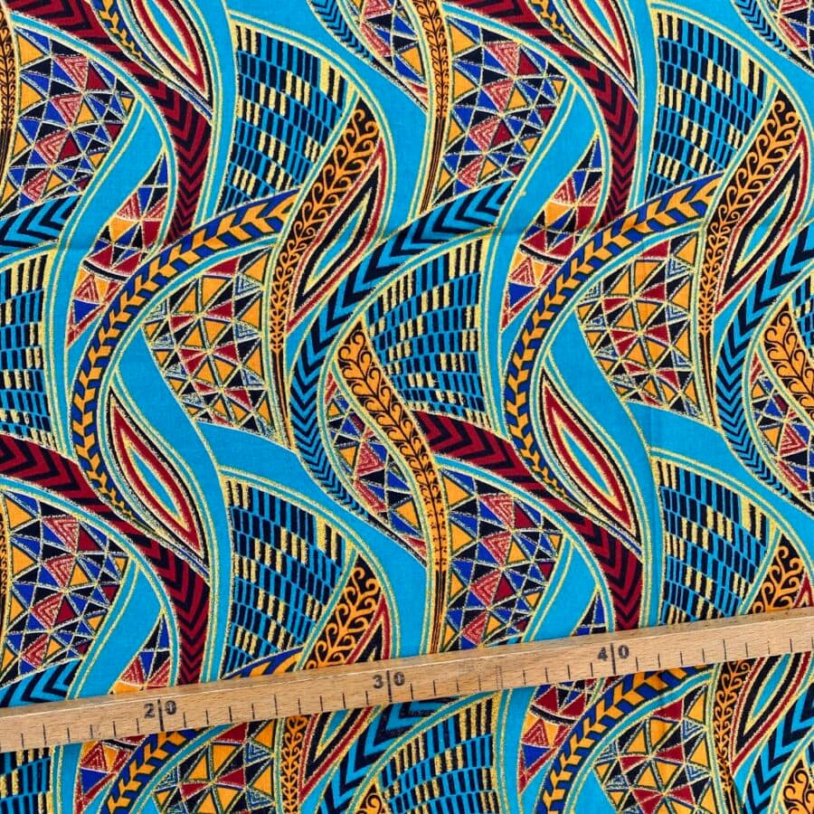 N’hésitez plus et craquez pour ce Tissu Wax pailleté turquoise imprimé Zentangle!