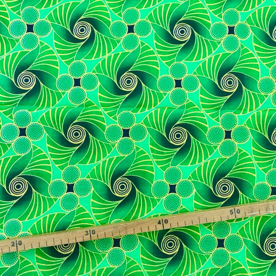 Tissu Wax pailleté vert imprimé Soleil