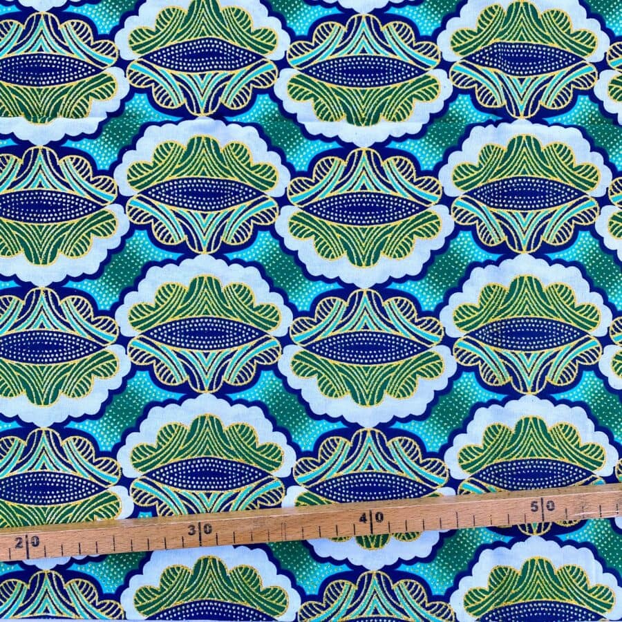 Tissu Wax pailleté vert turquoise imprimé Coquilles