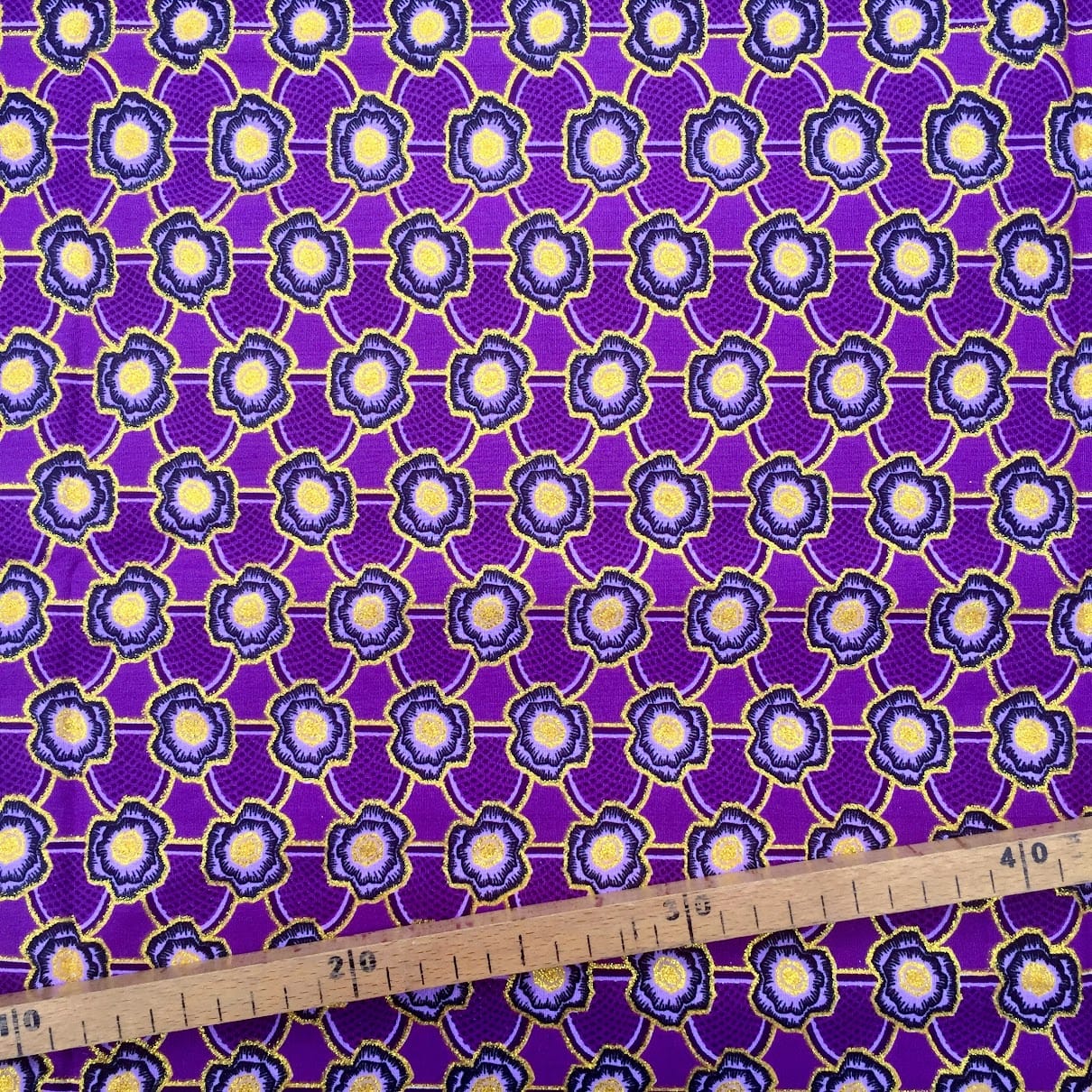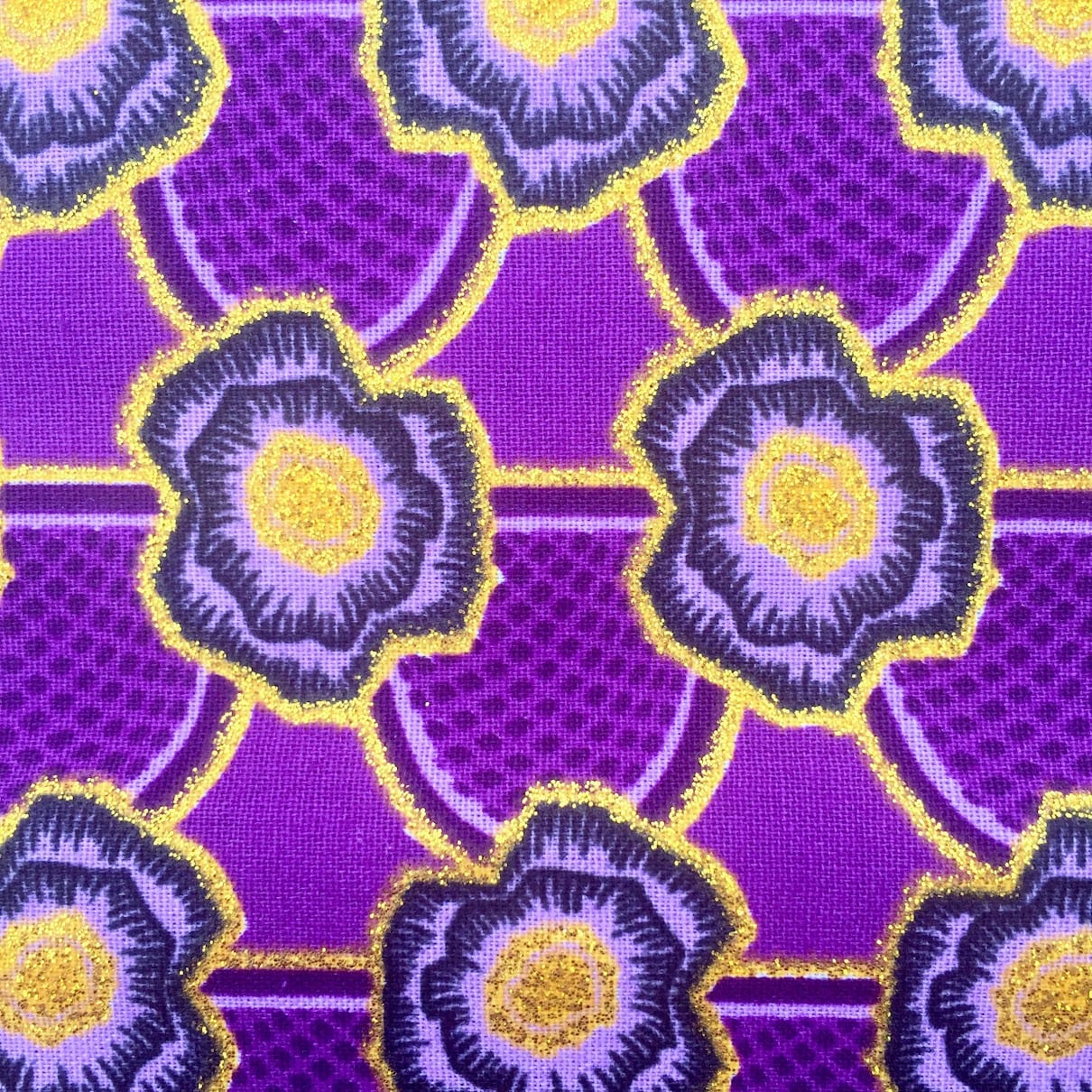 Encore un bel imprimé en vente au coupon, pour vos créations de vêtements, sacs et accessoires, décoration intérieure… Un Tissu Wax pailleté violet qui vous inspirera autant que moi je l’espère!