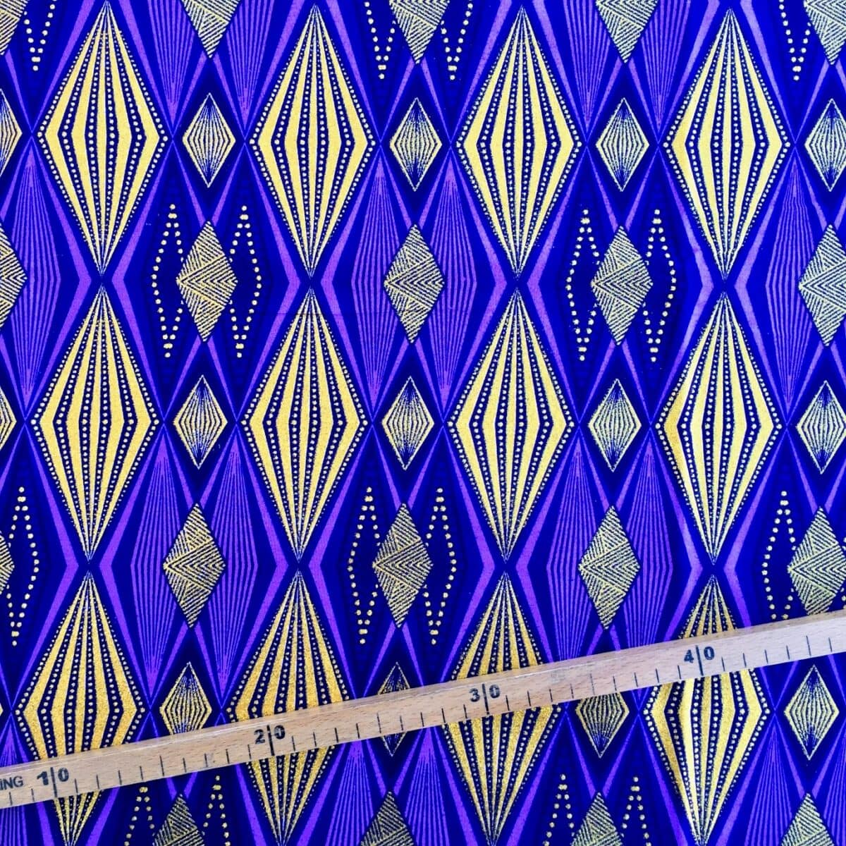 N’hésitez plus et craquez pour ce Tissu Wax pailleté violet imprimé Losanges!
