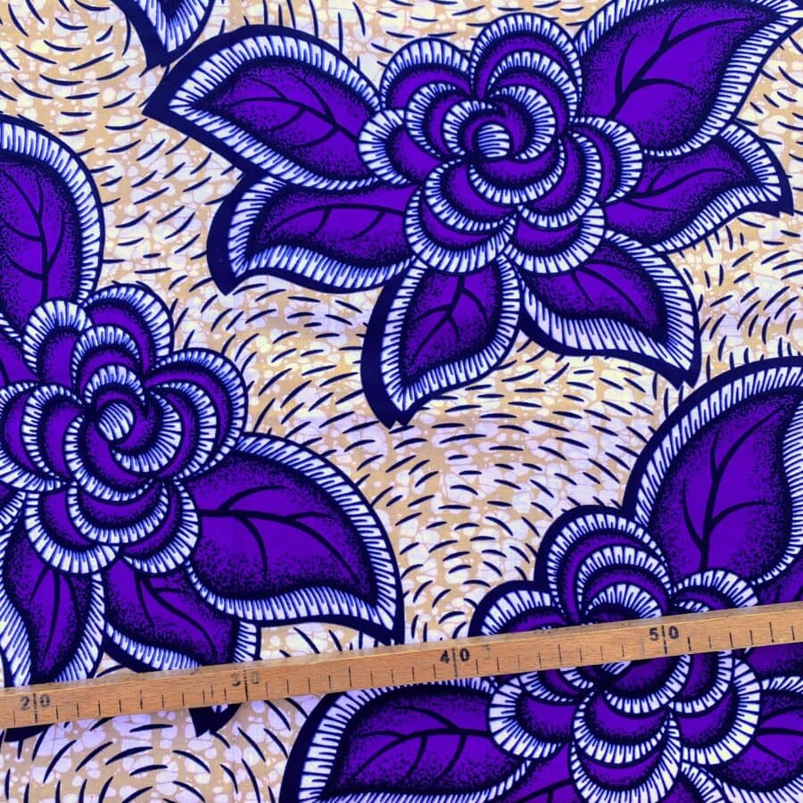 Encore un bel imprimé en vente au coupon, pour vos créations de vêtements, sacs et accessoires, décoration intérieure… Un Tissu Wax beige violet qui vous inspirera autant que moi je l’espère!