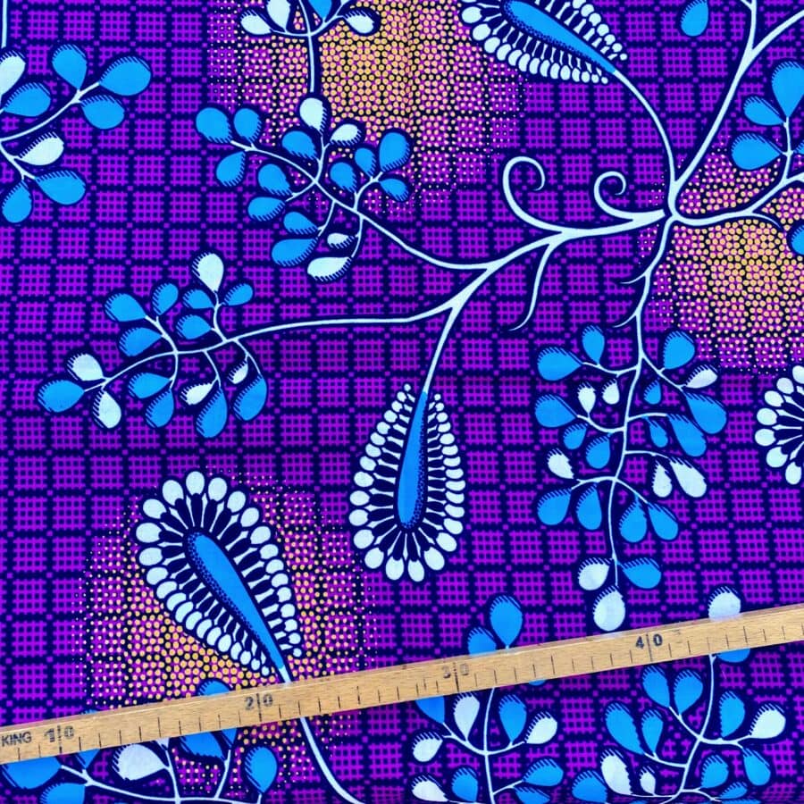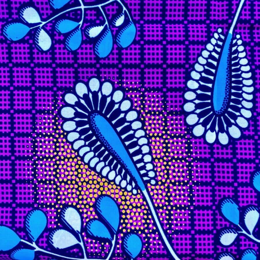 Encore un bel imprimé en vente au coupon, pour vos créations de vêtements, sacs et accessoires, décoration intérieure… Un Tissu Wax fuchsia bleu jaune qui vous inspirera autant que moi je l’espère!