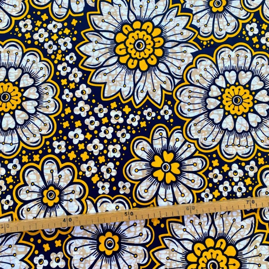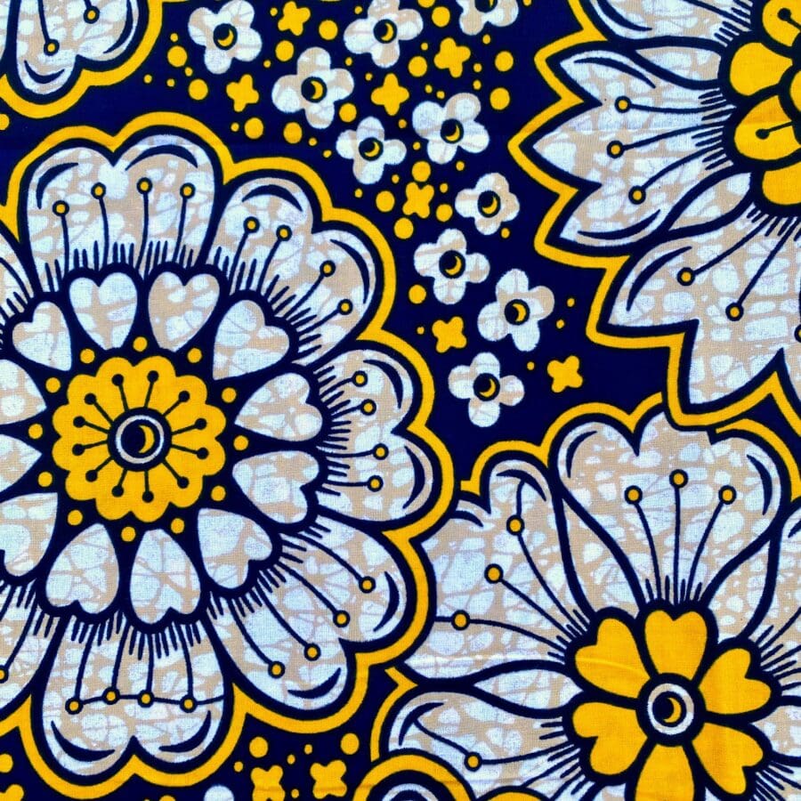 Tissu Wax jaune noir imprimé Florilège