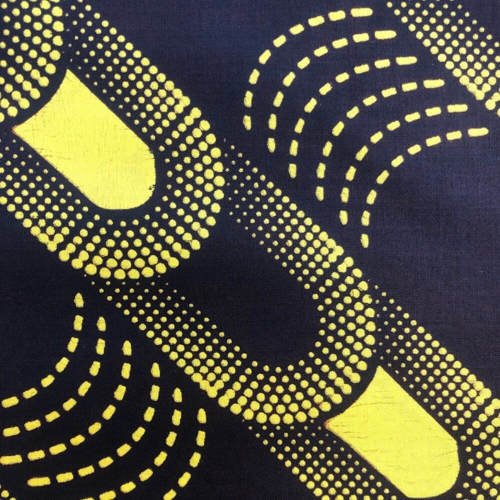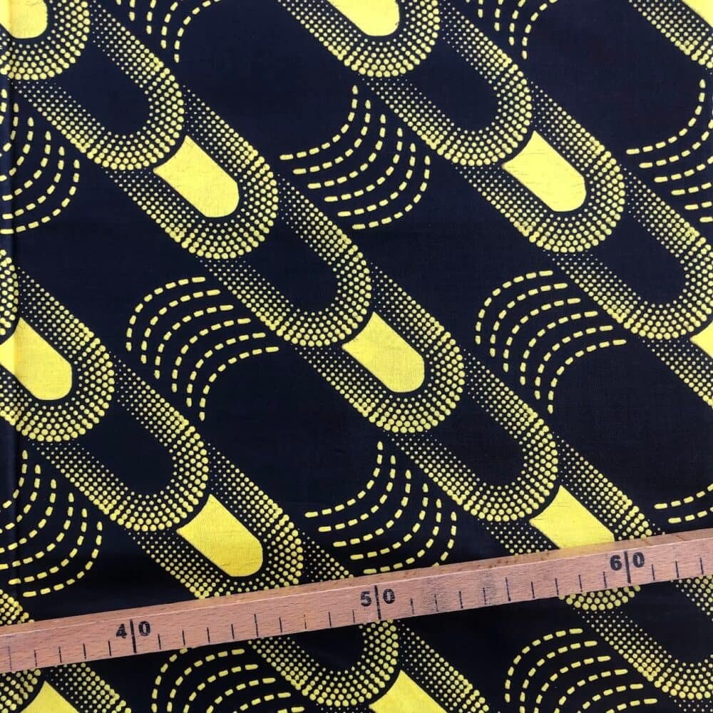 Encore un bel imprimé en vente au coupon, pour vos créations de vêtements, sacs et accessoires, décoration intérieure… Un Tissu Wax jaune noir qui vous inspirera autant que moi je l’espère!