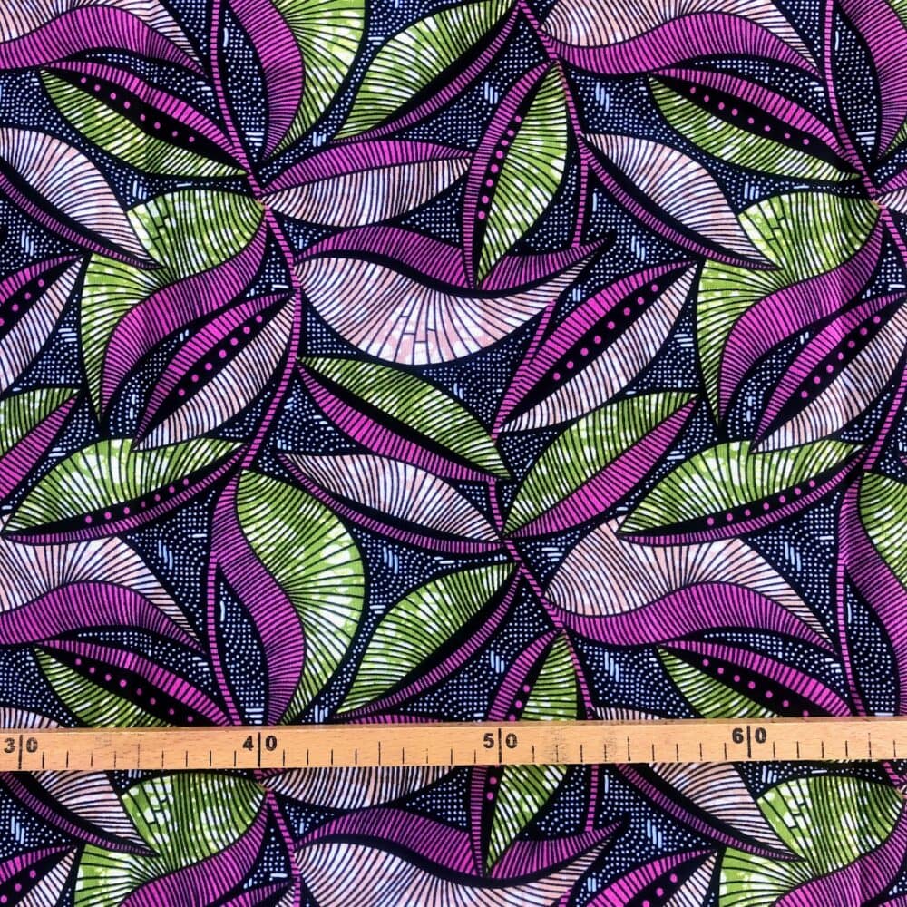 Tissu Wax kaki rose gris imprimé Feuillage