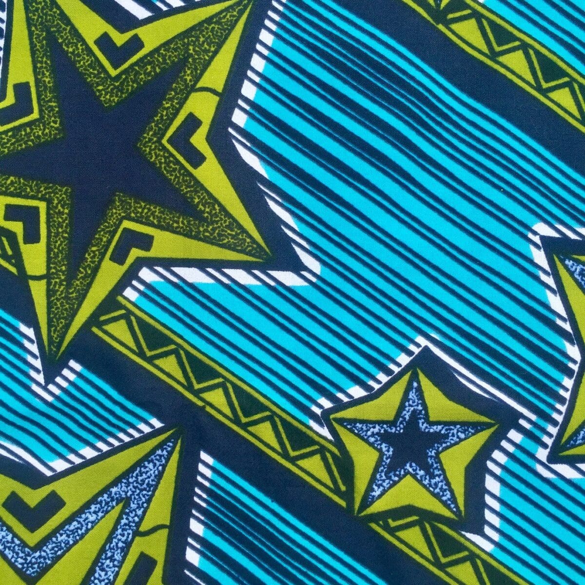 Tissu Wax kaki turquoise marine imprimé Etoiles