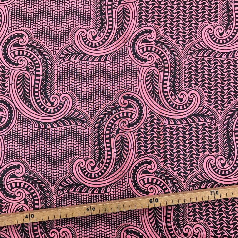 Tissu Wax noir rose imprimé Kashmir
