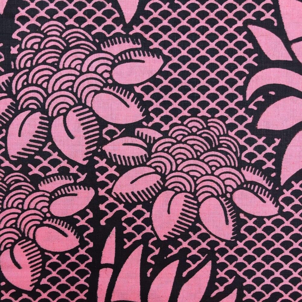 Encore un bel imprimé en vente au coupon, pour vos créations de vêtements, sacs et accessoires, décoration intérieure… Un Tissu Wax noir rose qui vous inspirera autant que moi je l’espère!