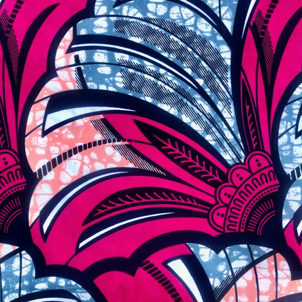 Encore un bel imprimé en vente au coupon, pour vos créations de vêtements, sacs et accessoires, décoration intérieure… Un Tissu Wax rose gris qui vous inspirera autant que moi je l’espère!