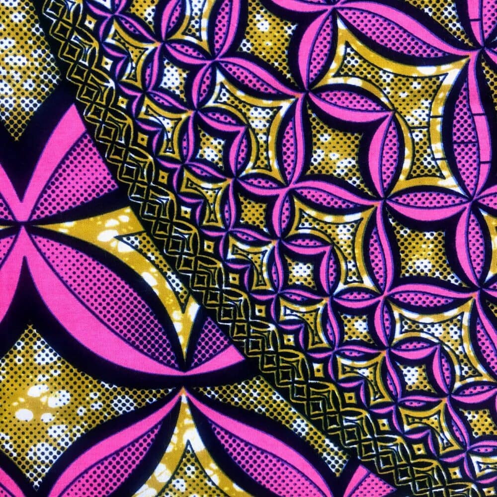 Encore un bel imprimé en vente au coupon, pour vos créations de vêtements, sacs et accessoires, décoration intérieure… Un Tissu Wax rose kaki qui vous inspirera autant que moi je l’espère!