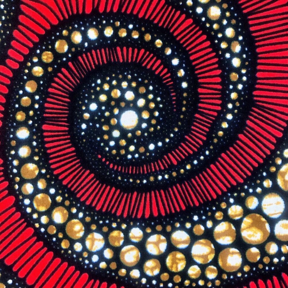 Encore un bel imprimé en vente au coupon, pour vos créations de vêtements, sacs et accessoires, décoration intérieure… Un Tissu Wax rouge beige qui vous inspirera autant que moi je l’espère!
