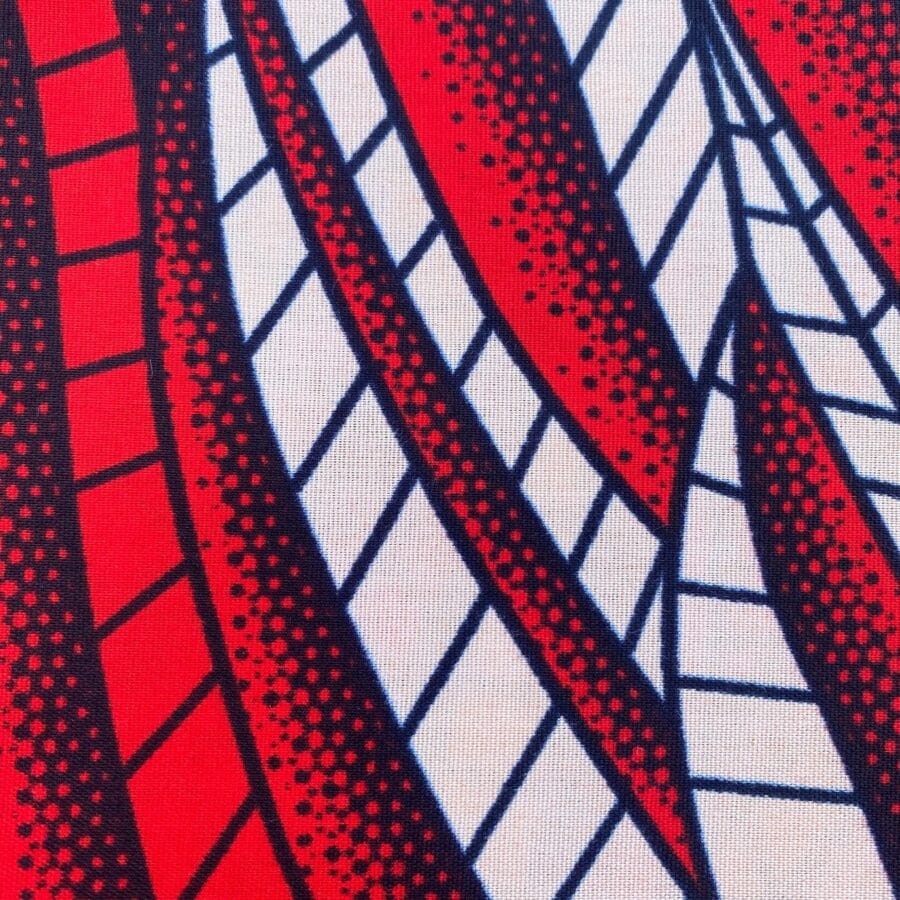 Encore un bel imprimé en vente au coupon, pour vos créations de vêtements, sacs et accessoires, décoration intérieure… Un Tissu Wax rouge beige qui vous inspirera autant que moi je l’espère!