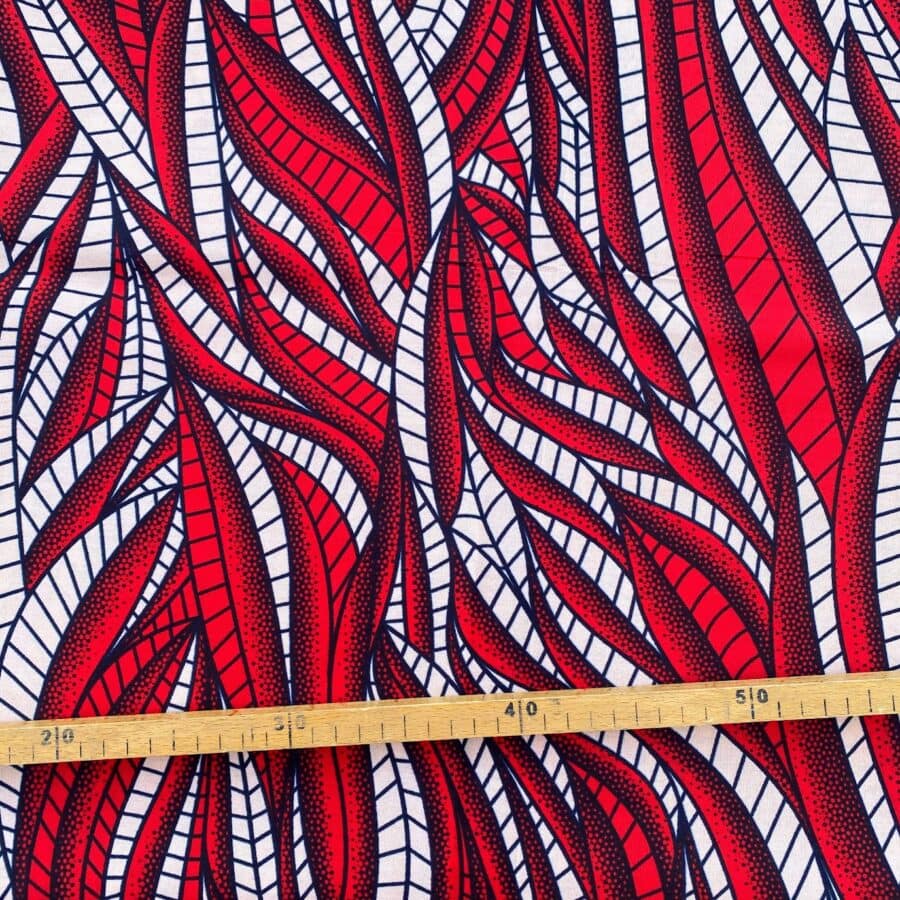 Tissu Wax rouge beige imprimé Feuillage