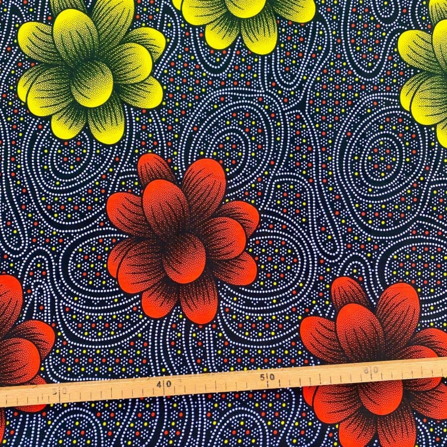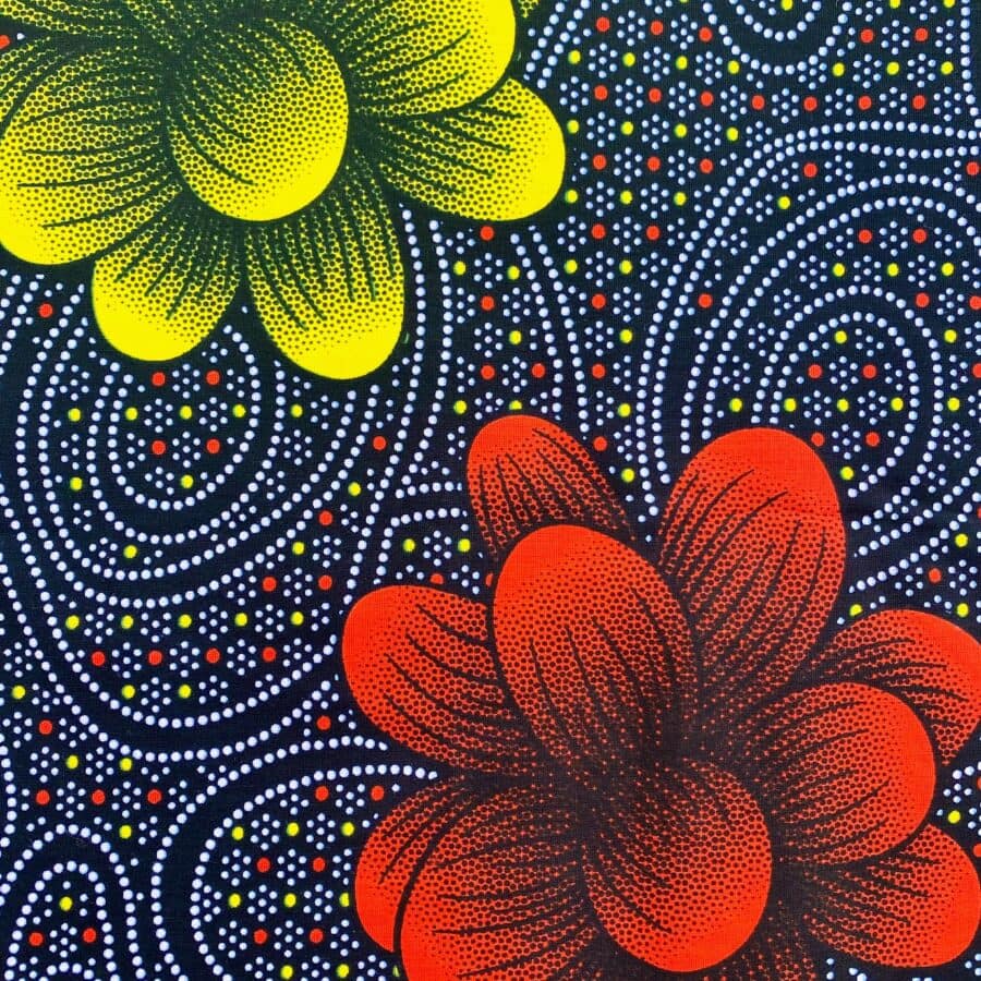 Tissu Wax rouge jaune imprimé Fleurs