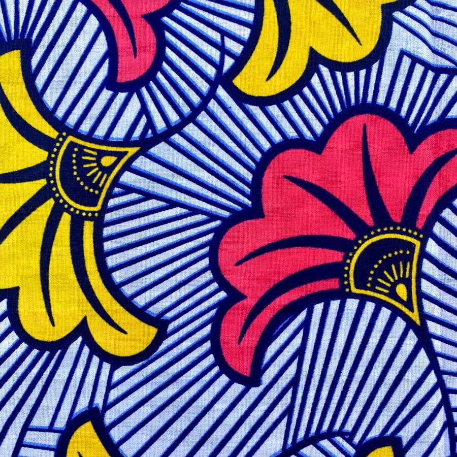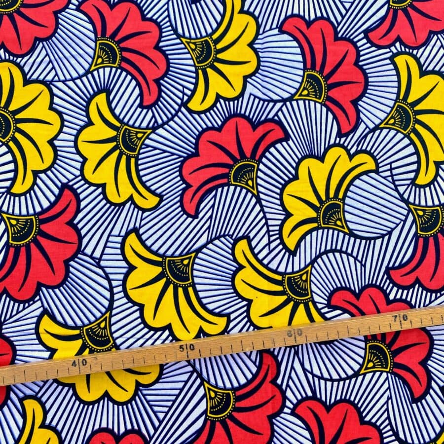 Encore un bel imprimé en vente au coupon, pour vos créations de vêtements, sacs et accessoires, décoration intérieure… Un Tissu Wax rouge orangé jaune qui vous inspirera autant que moi je l’espère!