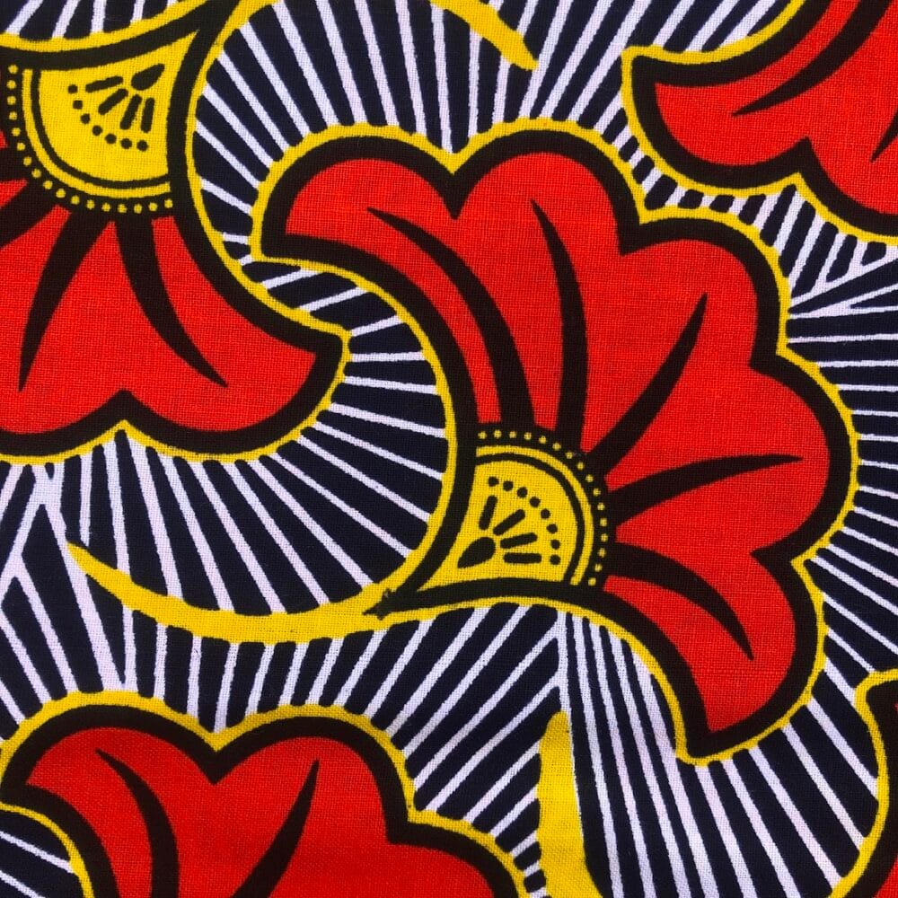 Encore un bel imprimé en vente au coupon, pour vos créations de vêtements, sacs et accessoires, décoration intérieure… Un Tissu Wax rouge orangé qui vous inspirera autant que moi je l’espère!